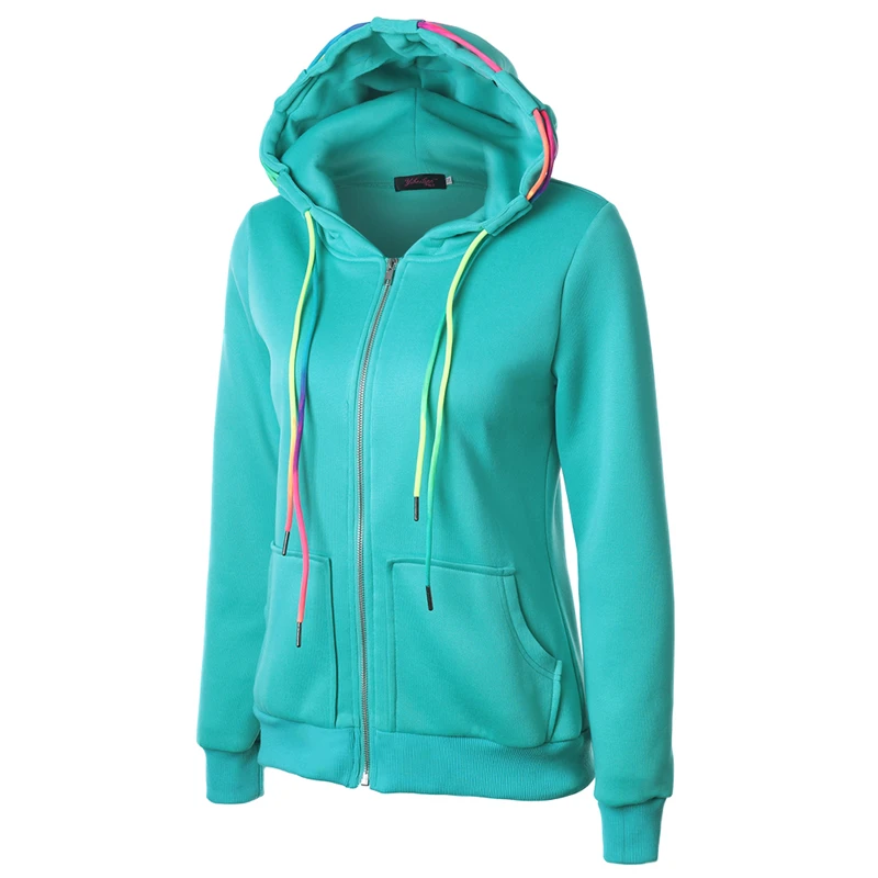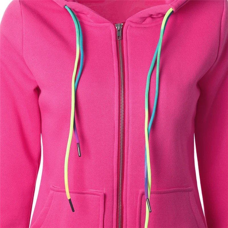 Women Solid Color Zipper Hoodie Pocket Drawstring Zip Up Sport Hoodies Women Autumn Winter Sweatshirt Female Casual Running Tops